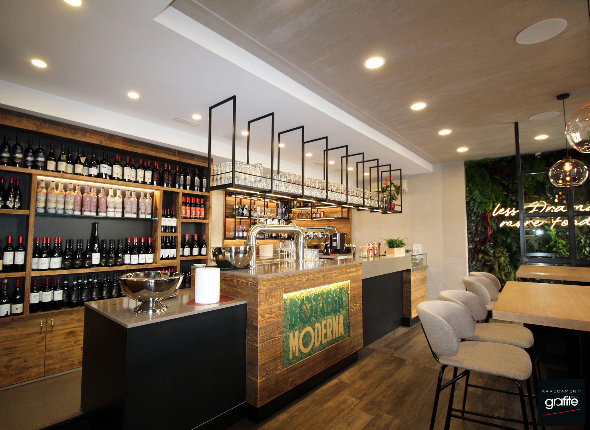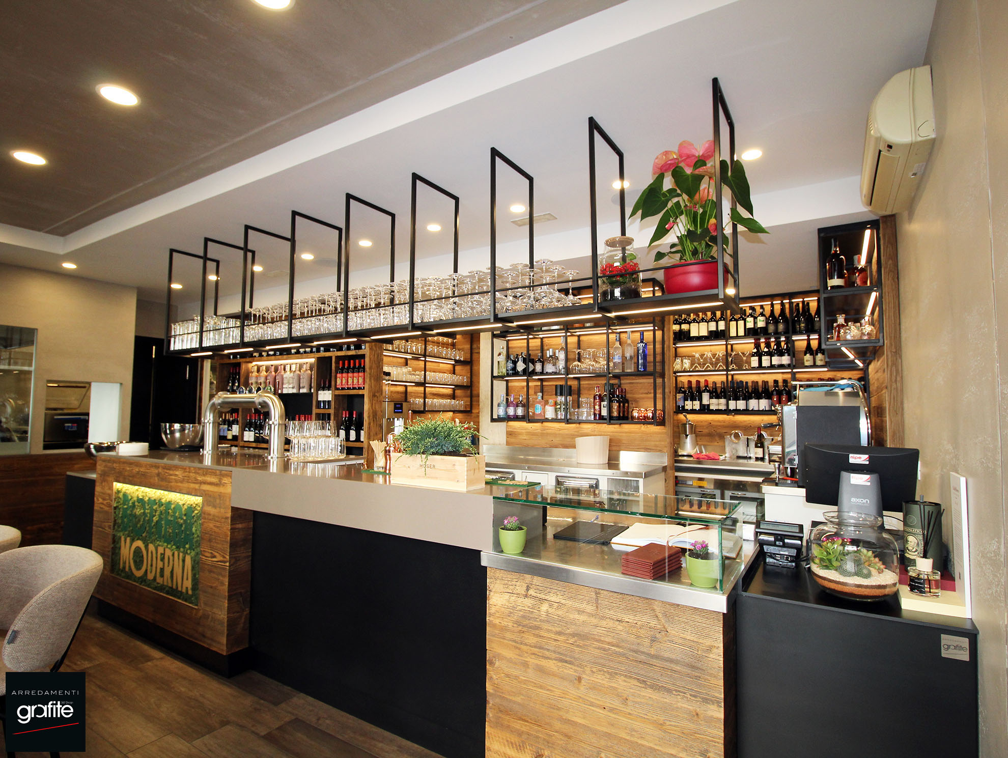 Per questo bistrot nel centro di Trento, GM Arredamenti ha realizzato un progetto su misura di Arredamenti Grafite, combinando legno vecchio e metallo per un arredo dal carattere caldo e industriale. L’ambiente, intimo e curato, è pensato per valorizzare l’esperienza culinaria, fatta di ingredienti locali e stagionali reinterpretati in chiave contemporanea. Le luci soffuse e la scelta mirata degli elementi d’arredo contribuiscono a creare un’atmosfera accogliente e raffinata.