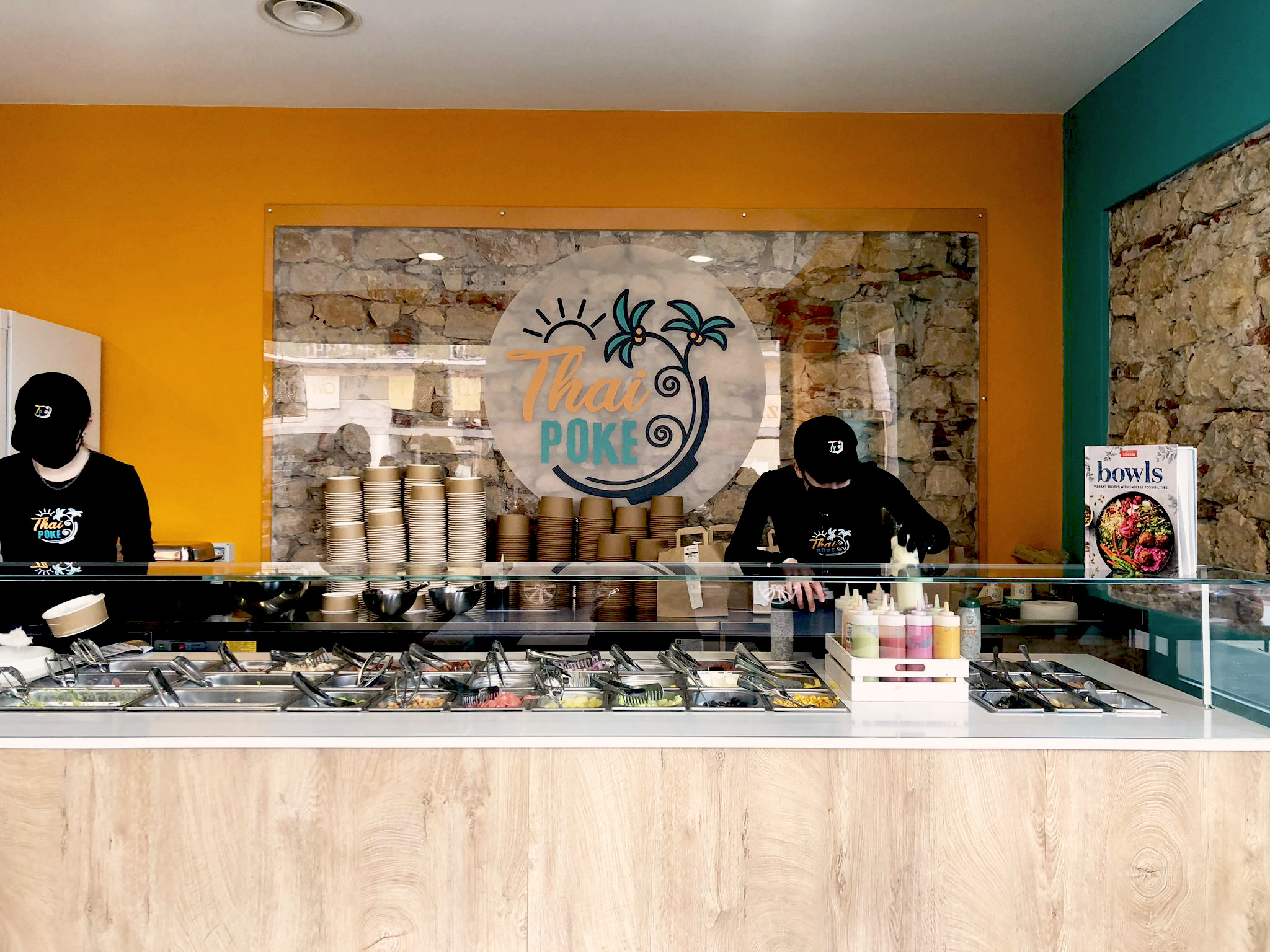 Questa combinazione di elementi crea un ambiente moderno e invitante per il Thai Poke, ideale per una pausa pranzo all’insegna del gusto e del relax.